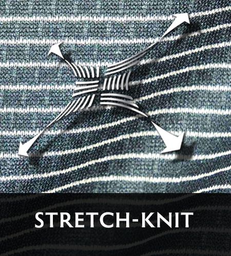 This fabric features a ribbed stretch-knit structure with a firm, substantial feel, offering...
